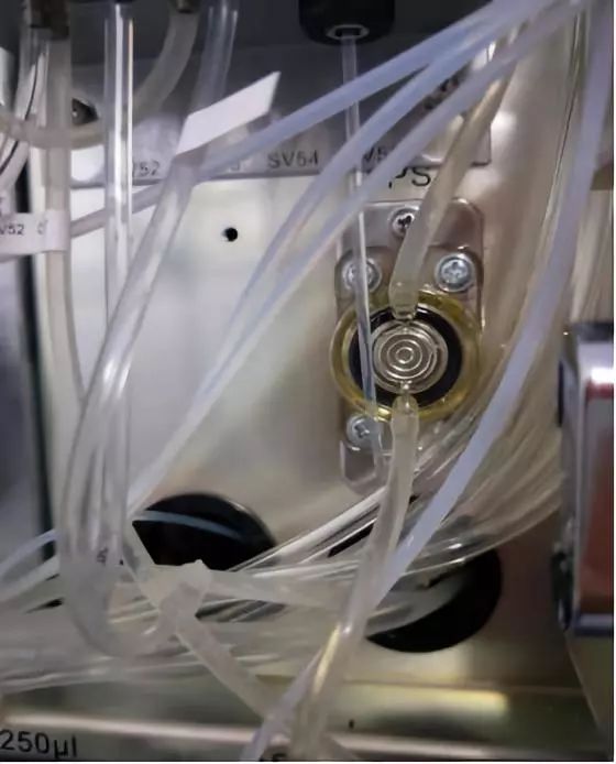 2. 再次关机,拆下j1-T180-p9与SV55相连接头,在样本针下放置空试管,用注射器从接头处吹打数次,重新安装后开机,仪器初始化顺利通过,此时仪器未报警。
