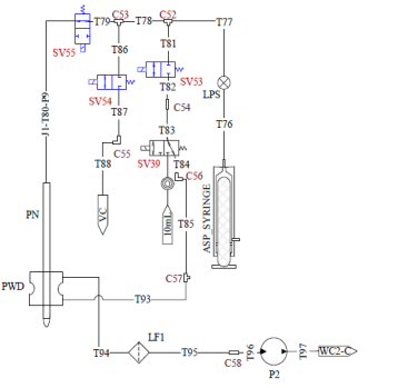 根据上述推论我们结合液路图分析:样本针吸取样本时ASP注射器提供动力——样本经样本针——j1-T180-p9——SV55——T79/T78/T77——LPS——T76完成样本的采样。下面就分段检查液路部分,检查时发现压力传感器及两端管路有较多微小气泡,判断某段管路有打折或者堵塞现象。