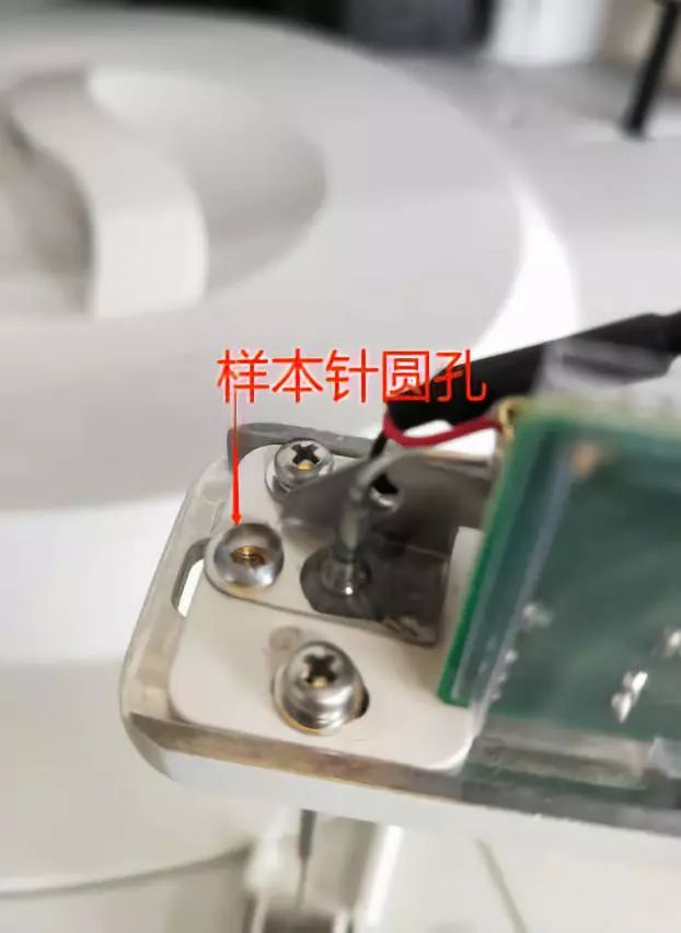 4.拆下易损坏的样本针,更换上新的样本针。仪器重新系统复位,用服权限下调试加样针及样本盘的各机械位置。 5.批量样本测试,仪器运行正常。故障处理完毕。
