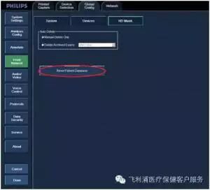注意:重置病人数据库后,所有留存在机器内的病人图像资料都会被删除,所以在重置前请一定要做好病人资料备份。