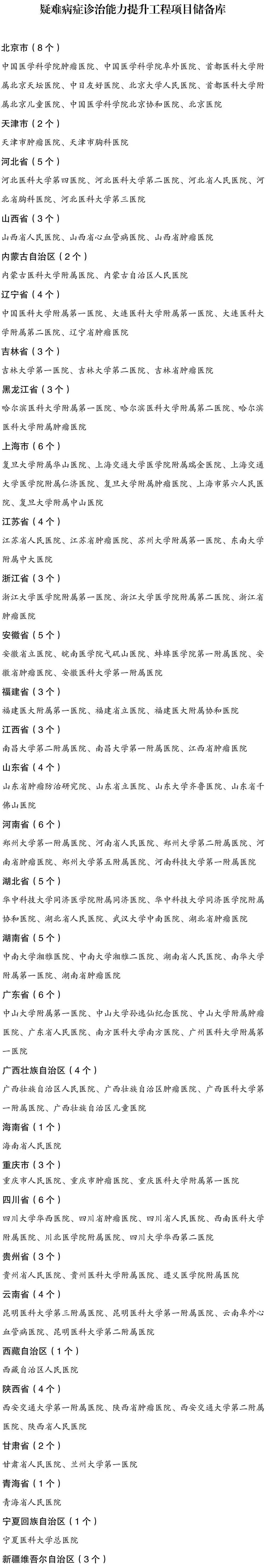 入选疑难病症诊治能力提升工程项目的113所医院名单