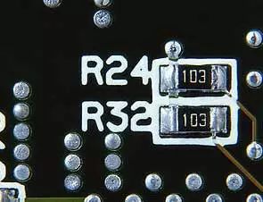 数标法主要用于贴片等小体积的电路,如: 103 表示10000Ω(10后面加3个0)也就是10K