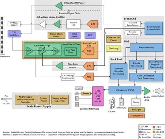 超声波系统的接收通道信号链包括低噪声放大器(LNA)、可变增益放大器(VGA)、低通滤波器(LPF)和高速高精度ADC。