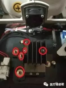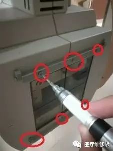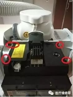 一、把束光器面前的两条起固定作用的金属条拆下,一共6颗,此台设备是梅花螺丝,请带好专用工具。
