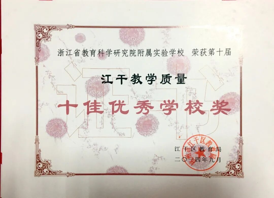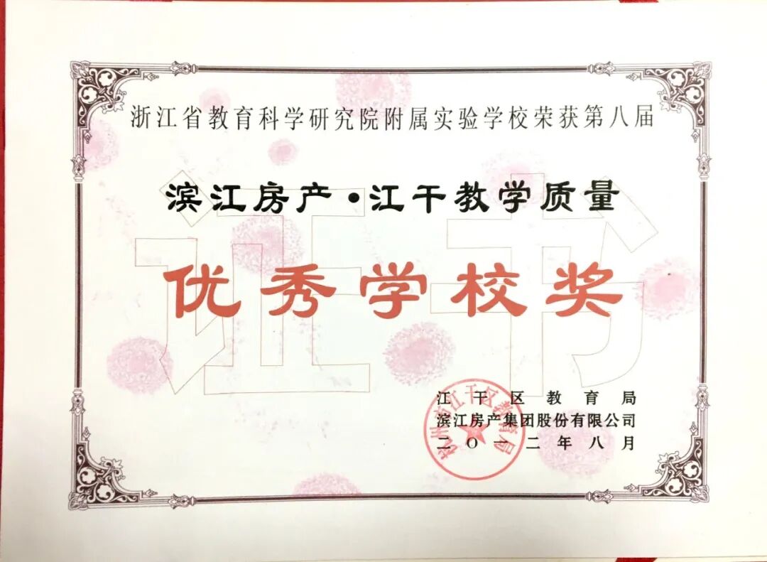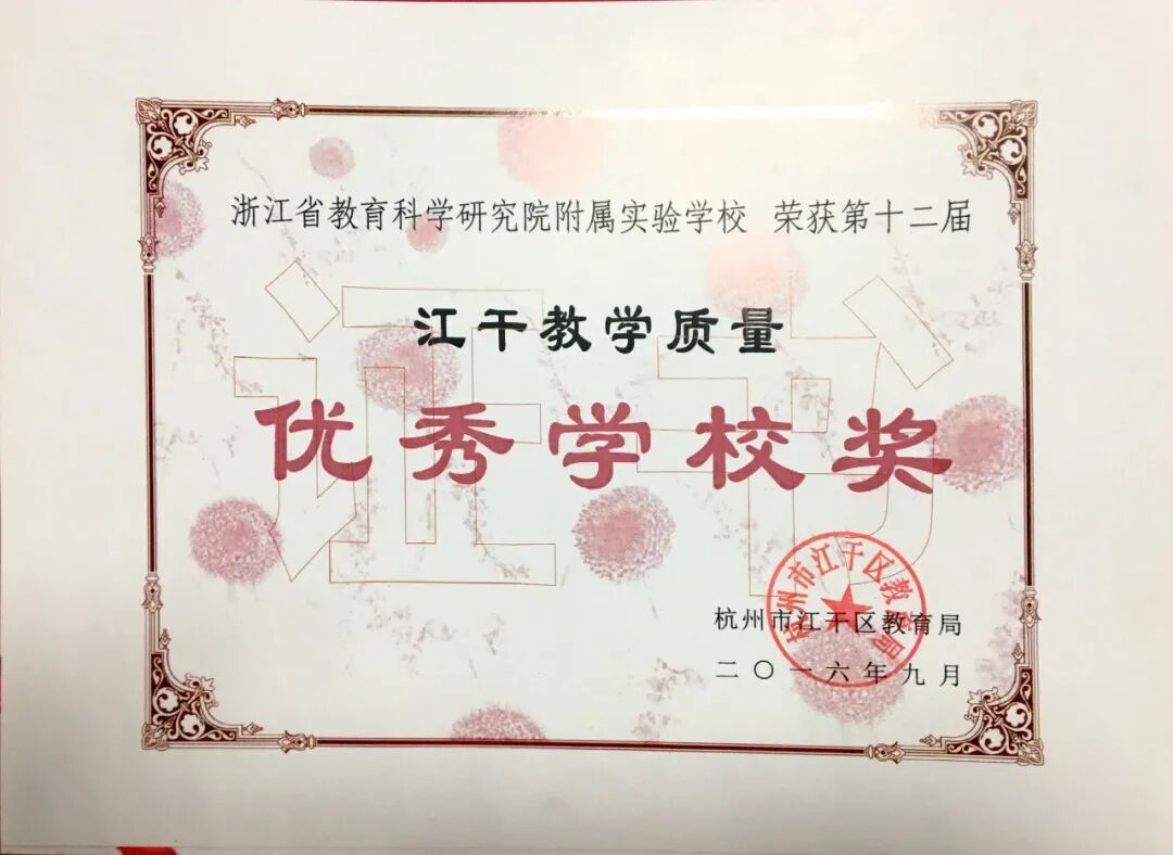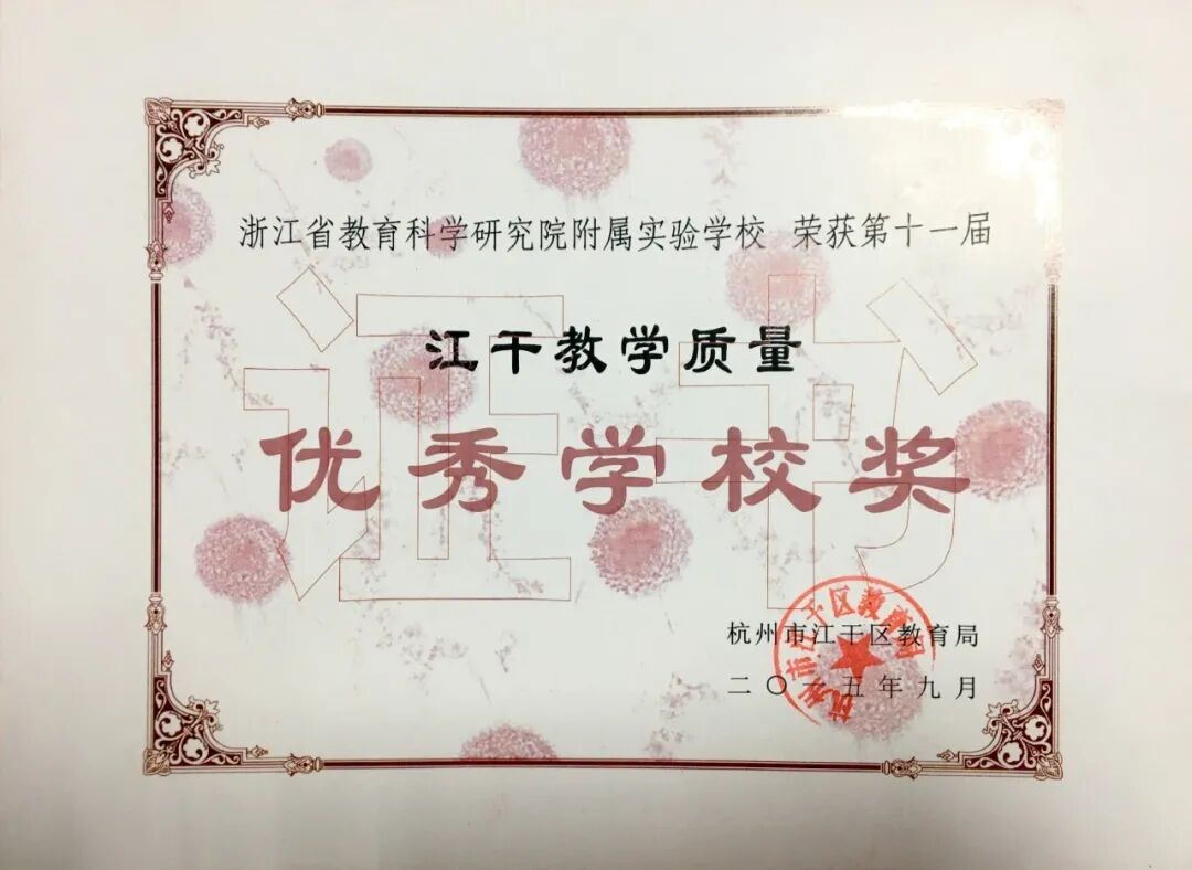 江干区人民政府颁发“学校发展奖”