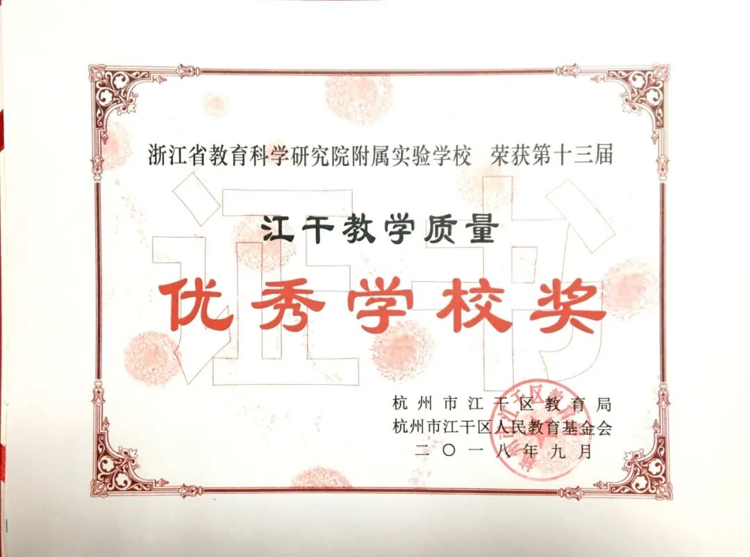 我校通过“先学后教”的研究,以“六卡导学”为着力点,深化“两卡两本”,努力建构“新学习系统”,借助省教科院的智力优势,实现课题研究与课堂教学的结合,创造了“教科附速度”。学校坚持“作业限行”、“分层教学”,实践轻负高质,学校教学质量连年提升,十年八获江干区教学质量奖,被评为杭州市美好初中,浙江省教科研先进单位等。