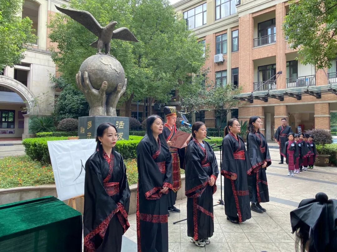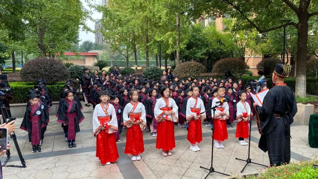 又到了开学季,满六岁的“小书包”们正式迈入了校园,开启了学校生活。为让同学们增强对传统文化的认识,10月10日上午,省教科院附校的师生齐聚一堂,在学校雄鹰雕像前,举行了隆重的一年级新生开笔礼启蒙仪式。 为了让学生了解传统文化,培养民族文化自豪感,弘扬民族精神,学校在古代仪式的基础上推陈出新。本次开笔礼有这六个步骤:正衣冠、朱砂启智、人字开笔、师长致辞、拜谒师长、恭诵三字经。