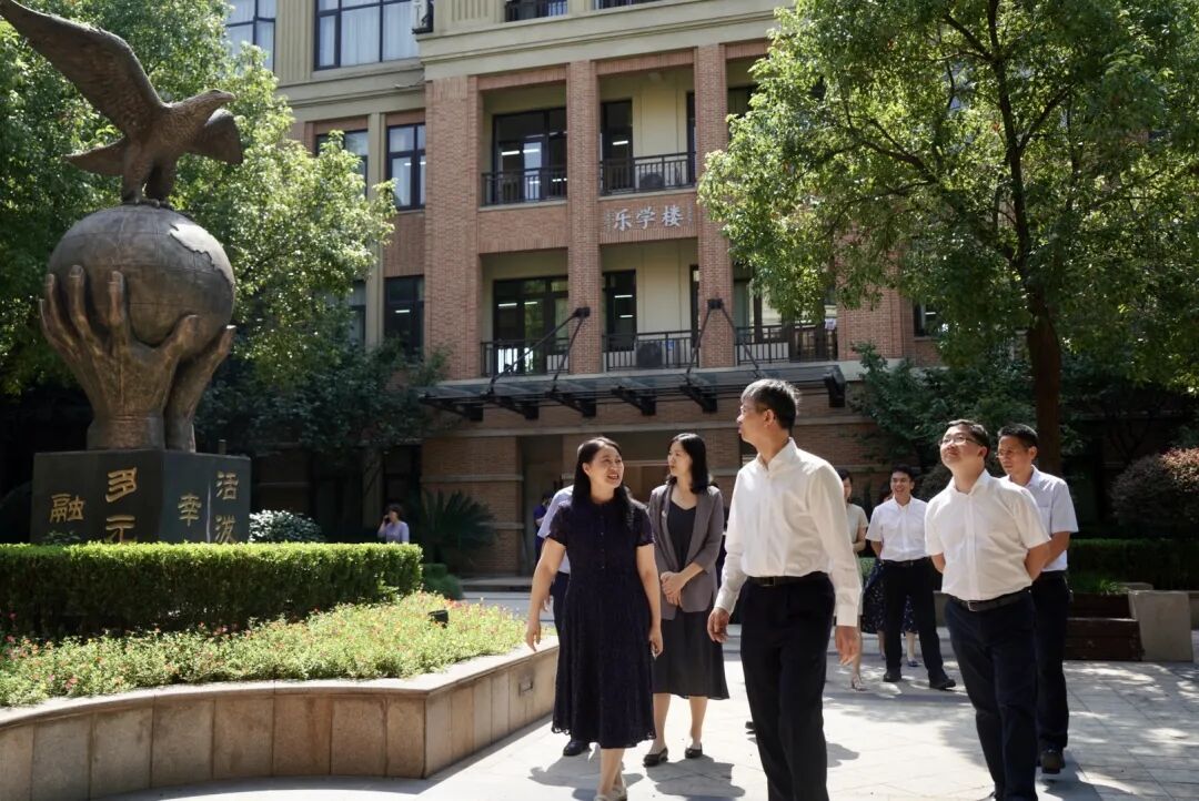 9月7日上午,在第36个教师节到来之际,杭州市江干区区委书记滕勇,区委副书记王文硕,区委常委、常务副区长沈燕俊,区教育局党委书记、局长徐晖,带着对浙江省教育科学研究院附属实验学校教育发展的关心,走进了省教科院附校。 滕勇书记对辛勤耕耘在教育教学第一线的省教科院附校的教师们致以节日的问候和崇高的敬意,向优秀教师代表一一握手,并表达殷殷期待。滕勇书记、王文硕副书记、沈燕俊副区长还分别向获得杭州市优秀班主任称号的俞霞老师、江干区“钱塘师表”获得者荣慧英老师、江干区优秀教师徐卫青老师献上鲜花。滕勇书记还鼓励老师们要主动迎接新时期的挑战,研究疫情下学生的心理变化,激励大家更好地担当起学生健康成长指导者和引路人的责任,学校要走“科研兴校”之路,办出学校的特色,老师要搞研究,校长要搞研究,通过教育教学改革全面打造一所高品质的学校。老师们如沐春风。 在唐宇红校长、罗志强书记的陪同下,滕勇书记一行还参观了校园环境、附校新星电视台以及妈咪爱心小屋,认真听取有关学校十年教育教学改革的介绍,针对学校建设问题提出指导性意见。滕书记指出,一定要努力打造具有省教科院附校品牌的特色校园建设。