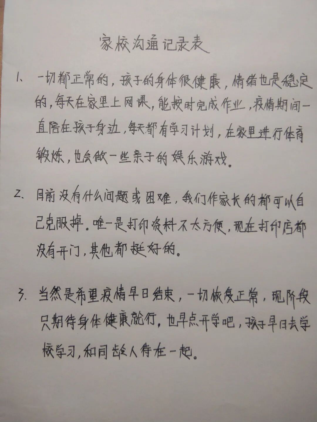 老师们通过家访和班会了解同学们的生活现状,为之排忧解难,给幼小的心灵带去了温暖。希望同学们在延课不延学的这段时期按时完成老师布置的作业,同时多读书,读好书,劳逸结合,加强体育锻炼,保持身心健康。