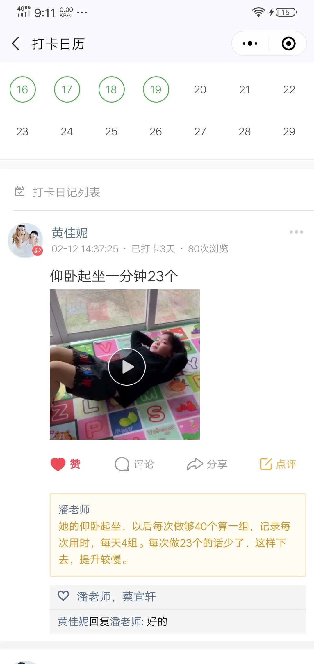 在体育老师的调动下,同学们养成了居家锻炼的好习惯,隔着时空,他们相互“切磋”,喊着杠杠滴口号——“锻炼身体齐抗疫,保护视力迎春天”,让“宅”家更有意义!