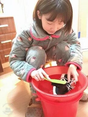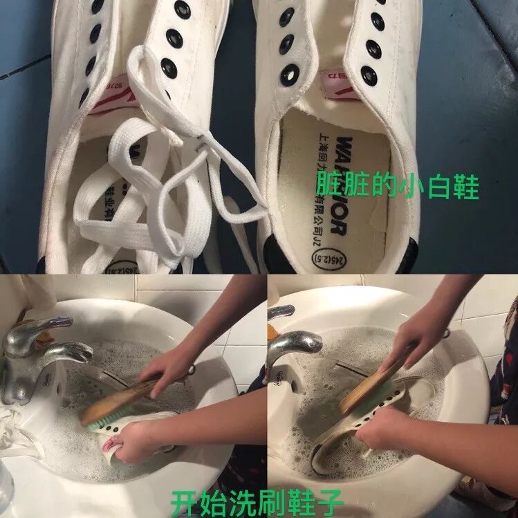 有的洗洗刷刷,小黑鞋变小白鞋啦!