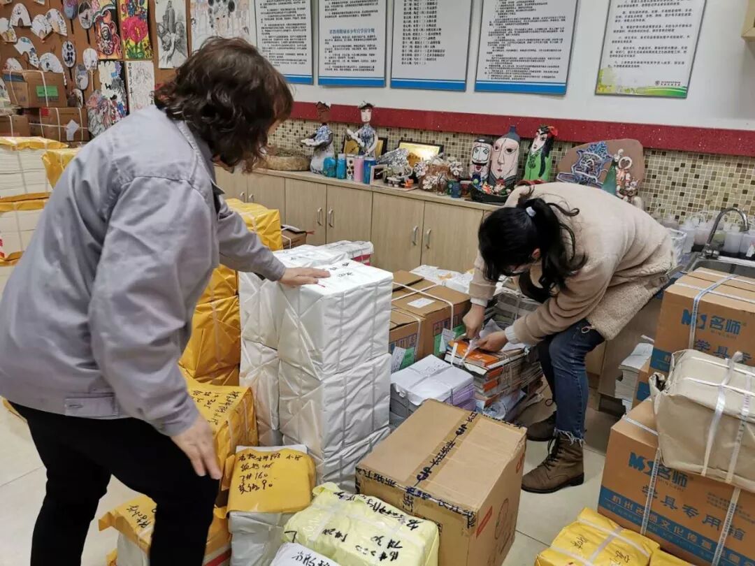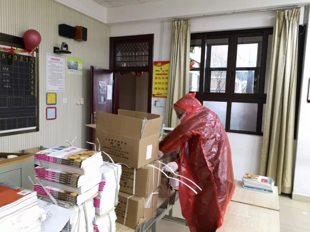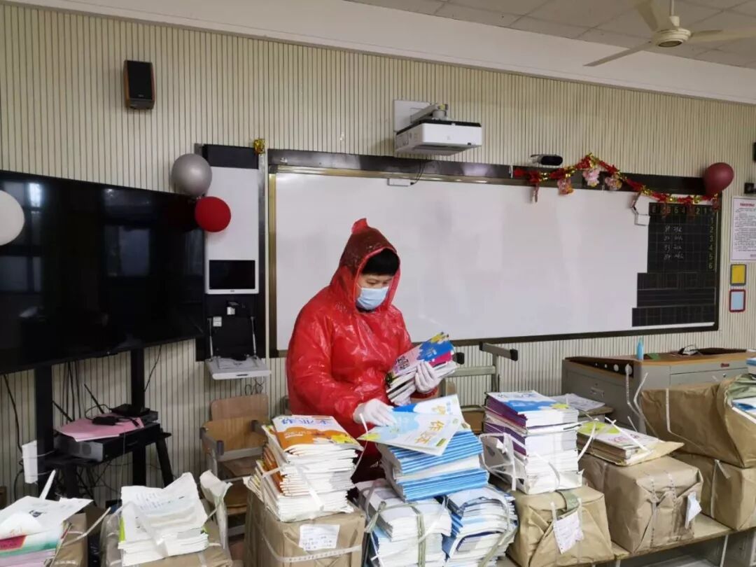 离学校较近的领导干部和老师还自愿来校,帮助需要学习用书的同学和老师分发、寄送教材。