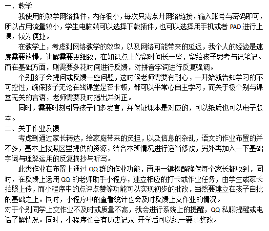 老师们在家中积极准备网络课堂的材料,并且时刻在线,做好网络个别辅导的准备,帮助孩子解决课堂上未解决的问题。