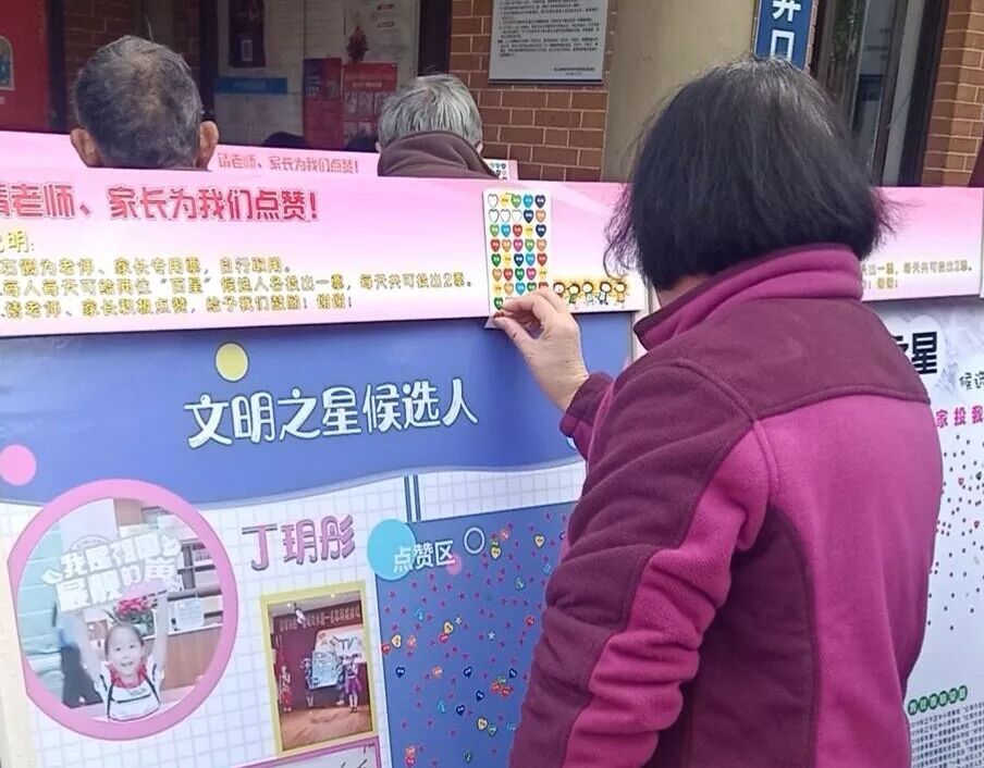同学们被“闪亮之星”候选人的才艺和成绩所吸引,纷纷驻足欣赏,投出了自己宝贵的一票。