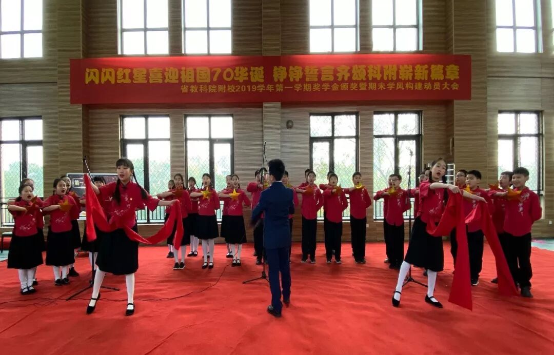 70年峥嵘岁月,祖国母亲激荡奋进、波澜壮阔,中华大地山河壮丽、欣欣向荣,时间的车轮即将驶出2019年12月6日,浙江省教育科学研究院附属实验学校奖学金颁奖暨期末学风构建启动仪式在体育馆二楼开展