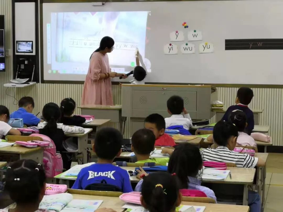 张晶老师带领小朋友走进了拼音的王国,她用几首生动形象的儿歌教会孩子们如何去读最基础的几个单韵母“aoe”,还教导小朋友们如何去写,如何辨别四个不同的音标。三校的小朋友一边念着儿歌,一边掌握了这几个拼音字母的读音与写法。