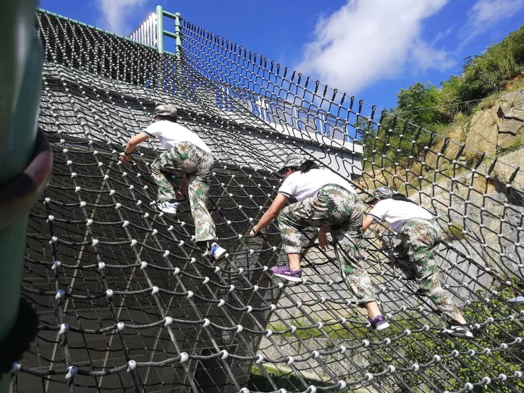 船头爬网,队员徒手攀爬“逃生网”,锻炼队员的平衡能力,身体的耐力和力量以及肌体的抵抗能力。下午烈日高照,同学们没有因此退缩,而是开始了山野拉练。山野拉练是为了锻炼小军人钢铁般的意志,每人一瓶矿泉水,小军人们一个个迈着轻快的脚步向山上挺进,整齐的队伍犹如一条长龙。经过了一整天的训练,夜晚教官为大家带来了一场生动有趣、浅显易懂的军事知识科普讲座。他为同学们讲解了现代战争的特点以及现代武器的发展。每当讲解到一些专业术语时,他都会用简单易懂的方式帮助同学们理解。同学们认真聆听,十分珍惜这次来之不易的学习机会。转眼,四天的始业教育即将走向尾声,在这几天里,我们流下了许多的汗水,每天早晨六点起床,用自己的努力挣取营元,平常不爱喝水的同学,来到这营地也几乎每天5瓶以上。经过这几天的训练,同学们都有了很大的改变,所有的行为习惯已经和第一天大有不同——声音变得响亮了,步伐变得整齐了,生活习惯也越来越好了,一个个走起路来也雄赳赳气昂昂,精气神十足!在始业教育结束前,我们还会举办创意十足、丰富多彩的联欢晚会以及始业教育表彰大会,为同学们的始业教育画上喜人的感叹号。