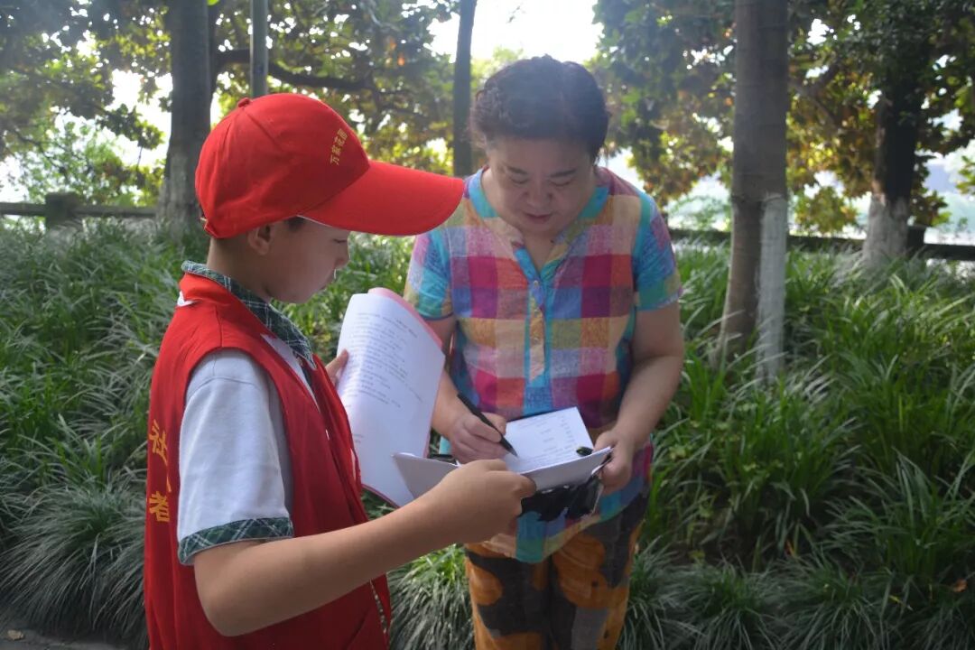 “阳光小队”的队员们给老师、保安叔叔宣传垃圾分类知识,在城东公园给往来的市民分发宣传卡、进行问卷调查,在学校附近的小区上门拜访宣传,并清理沿途绿化带中的垃圾,分类收集并放入相应的垃圾箱,用自己的实际行动向市民宣传绿色、和谐、环保的生活方式。