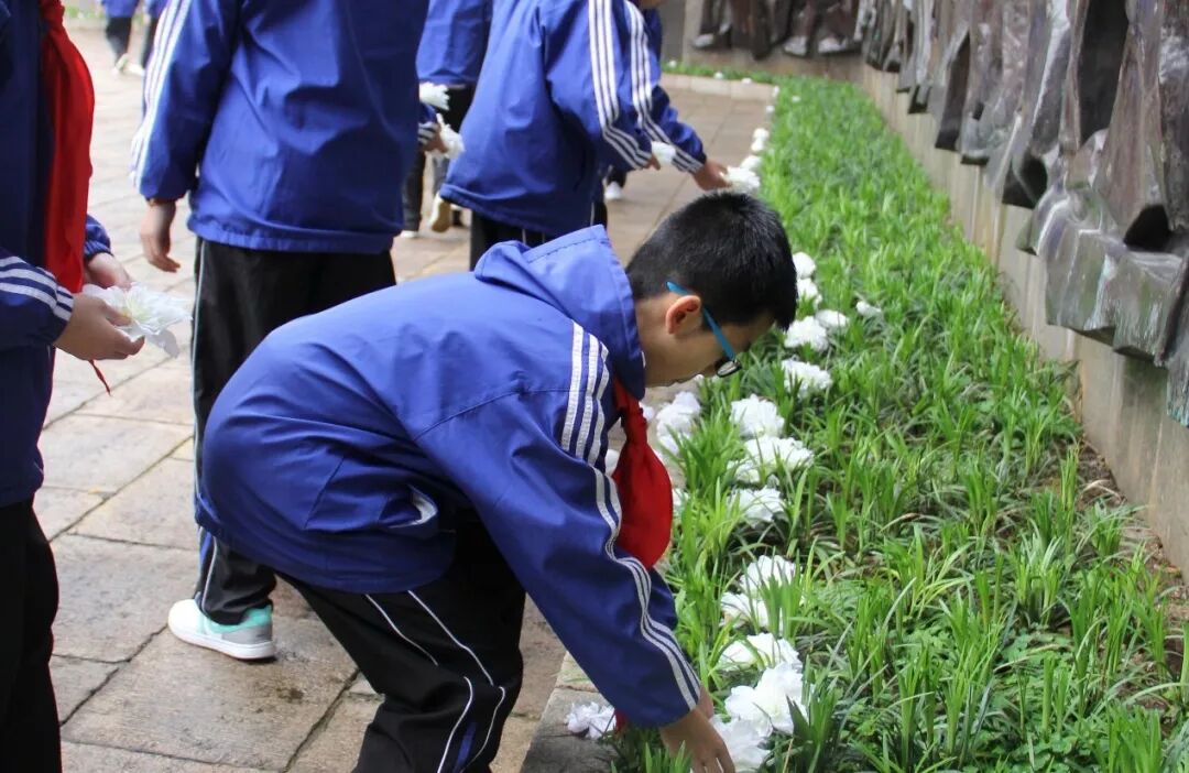 朵朵白花寄哀思。英烈们,请安心长眠,我们会接过革命的火炬,奋勇直前!