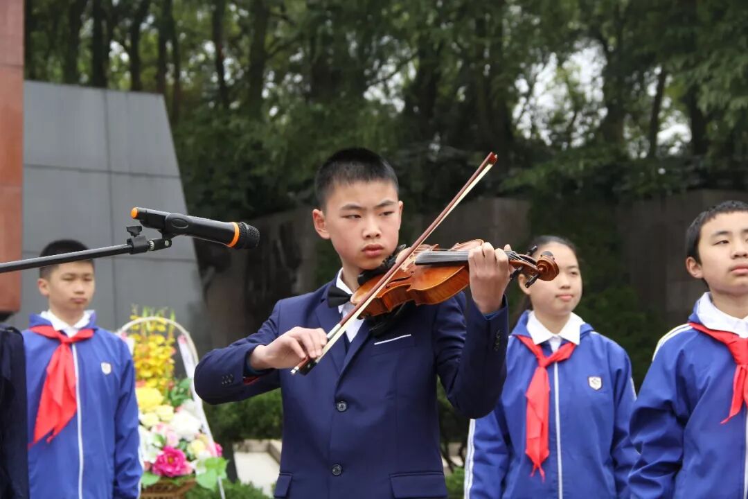 时间的长河流淌不息,却无法冲淡我们对革命先烈的缅怀。我们要珍惜现在来之不易的生活,更要懂得所肩负的历史责任和使命。少先队员通过饱含深情的朗诵与小提琴演奏,感谢那些为祖国建设而奉献生命的烈士们,高歌“祖国啊,我亲爱的,祖国!”
