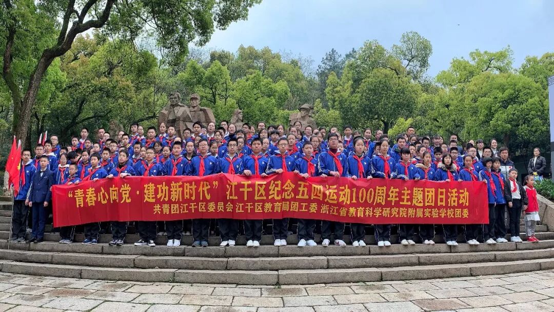 4月3日上午,“祭奠革命先烈·传承红色基因”江干区纪念五四运动100周年暨2019年清明祭英烈仪式在云居山浙江革命烈士纪念碑前举行。江干区委常委宣传部长许莺燕,区关工委常务副主任刘兴仙,共青团江干区委员会书记钱玲,区文明办副主任毛展宏,区教育局党委委员、副局长沈琳,浙江省教育科学研究院附属实验学校唐宇红校长以及江干青年代表少先队员代表等200人参加了庄严肃穆的纪念仪式,一同寄托哀思,激励斗志。