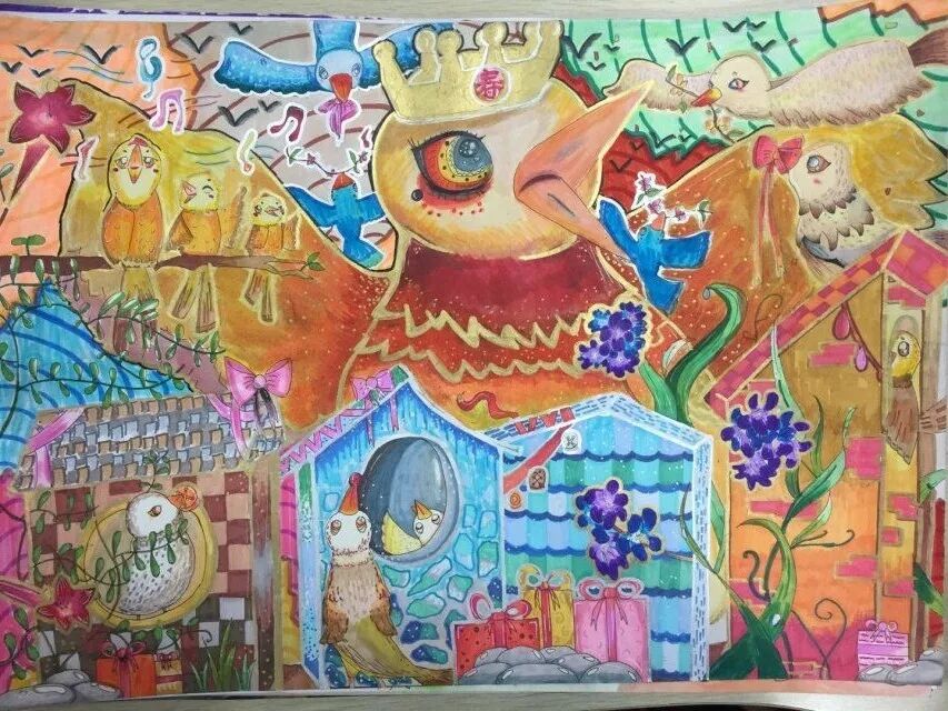 同学们的创作天马行空,表现技法也多种多样,更难能可贵的是能在原创的基础上,通过多元的表达来表现主题。