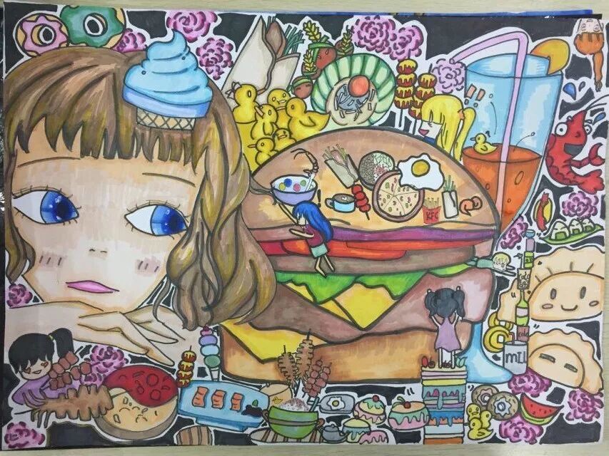 本次大赛有“生日颂”、“美食畅想”和“我的逗趣生活”三个主题。让我们一起来欣赏同学们天马行空的精彩作品!