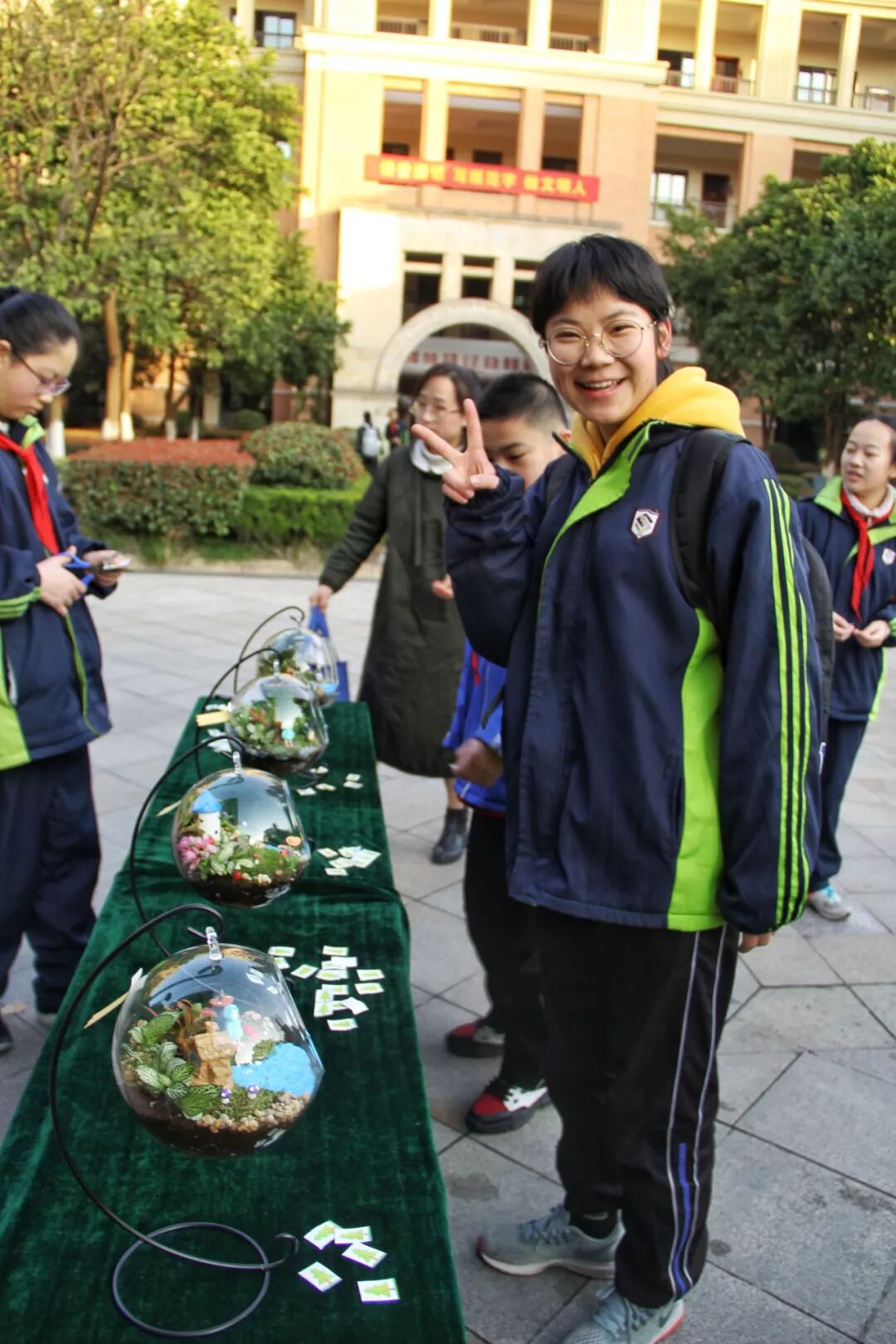 每个年级组的盆景还将以投票的形式,由男教师和学生决出最受欢迎的那一个,看看哪个盆栽是最为大家喜爱的。
