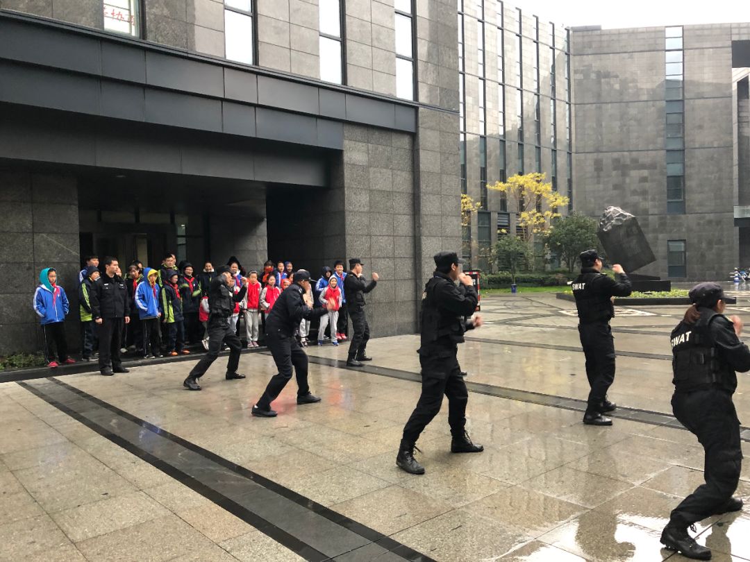 在参观的最后,学生们还看了一场英姿飒爽的军体拳,多位法警在现场为学生们演练了一套军体拳,获得了学生们的阵阵掌声。