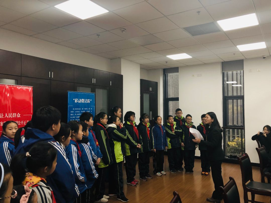 参观过程中,还进行了法官面对面”——法官现场解答未成年人相关的法律疑问的环节,同学们对这个环节兴趣极大,纷纷踊跃提问。随后,民庭法官还为同学们上了一堂法制宣传课,生动讲述了一些与学生们日常生活息息相关的法律知识,受到了同学们的热烈欢迎。