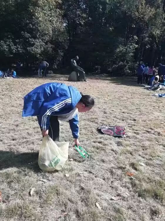 同学们利用平时的休息时间,来到社区的公园,将丢弃的垃圾一一拾起。每一次弯腰都是对志愿者精神的诠释。