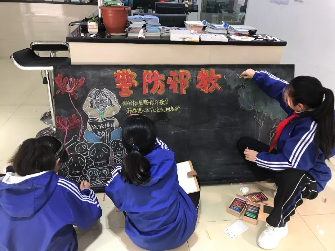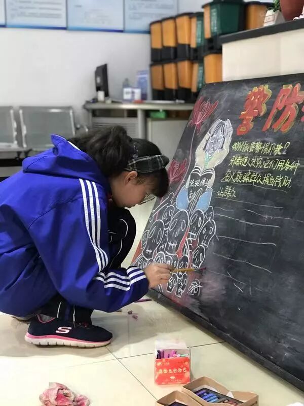 学校团员志愿者们还在“一二·五”国际志愿者日当天来到闸弄口天运社区,利用自己的绘画特长为社区绘制“警防邪教”主题的黑板报,受到了社区叔叔阿姨的一致好评。这项活动我校志愿者已经接力坚持了2年。
