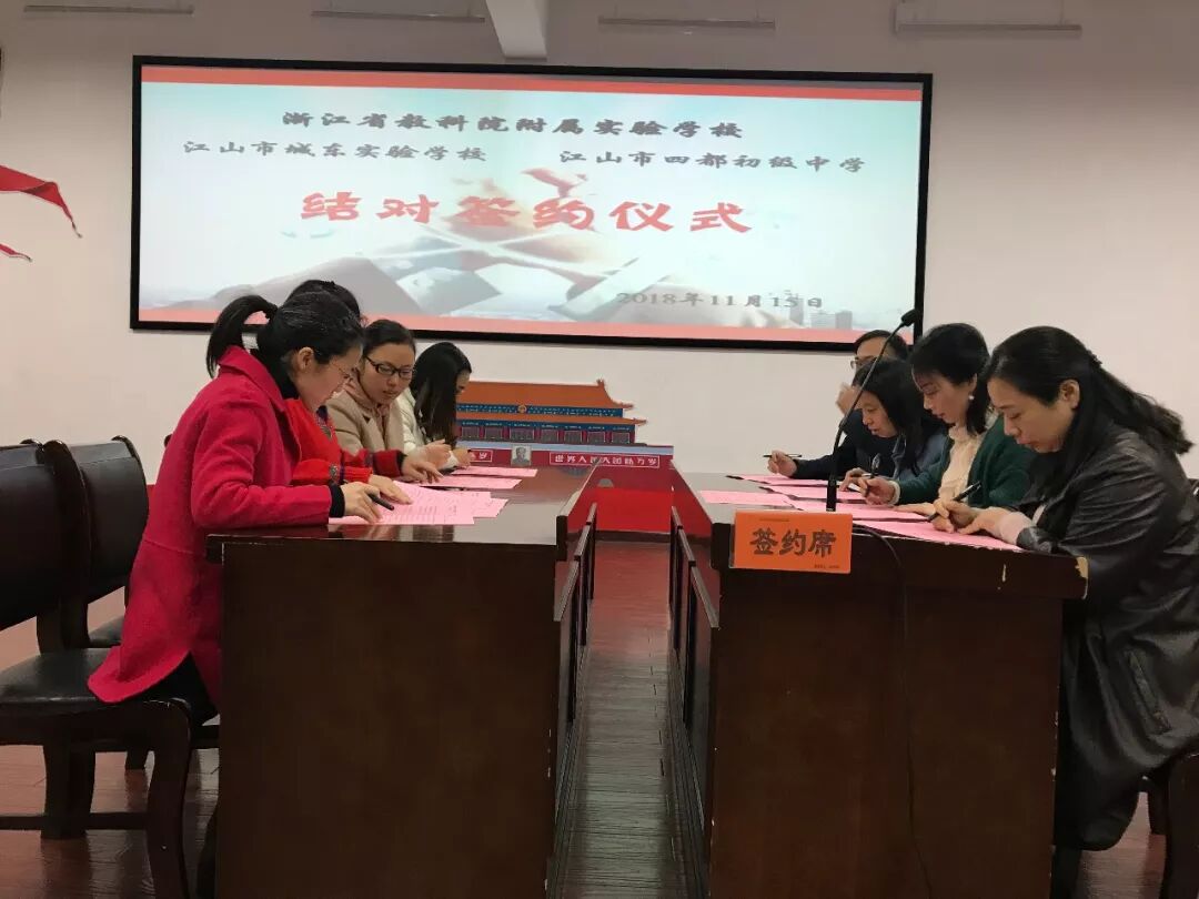 我校的名班主任周军老师、荣慧英老师、郭鸿霞老师和杨晓峰老师与江山市两所学校的四位青年教师结对,助力青年教师成长。
