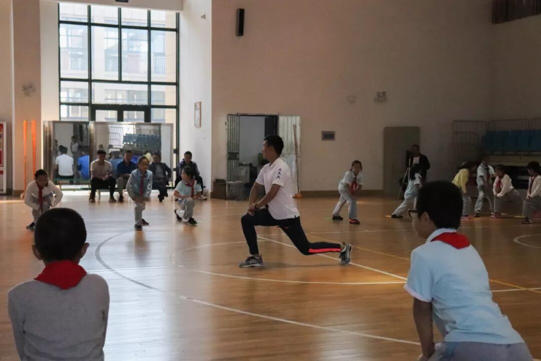 而在小朋友最喜欢的体育课上,首先登场的是我校的青年教师黄晨老师,执教的课题是《双脚连续跳》。黄老师根据三年级学生生理、心理及认知能力设计教学,以“模仿四种动物的跳法”,激发学生的运动兴趣,每一个教学环节都重视学生的心理体验,取得了良好的教学效果。