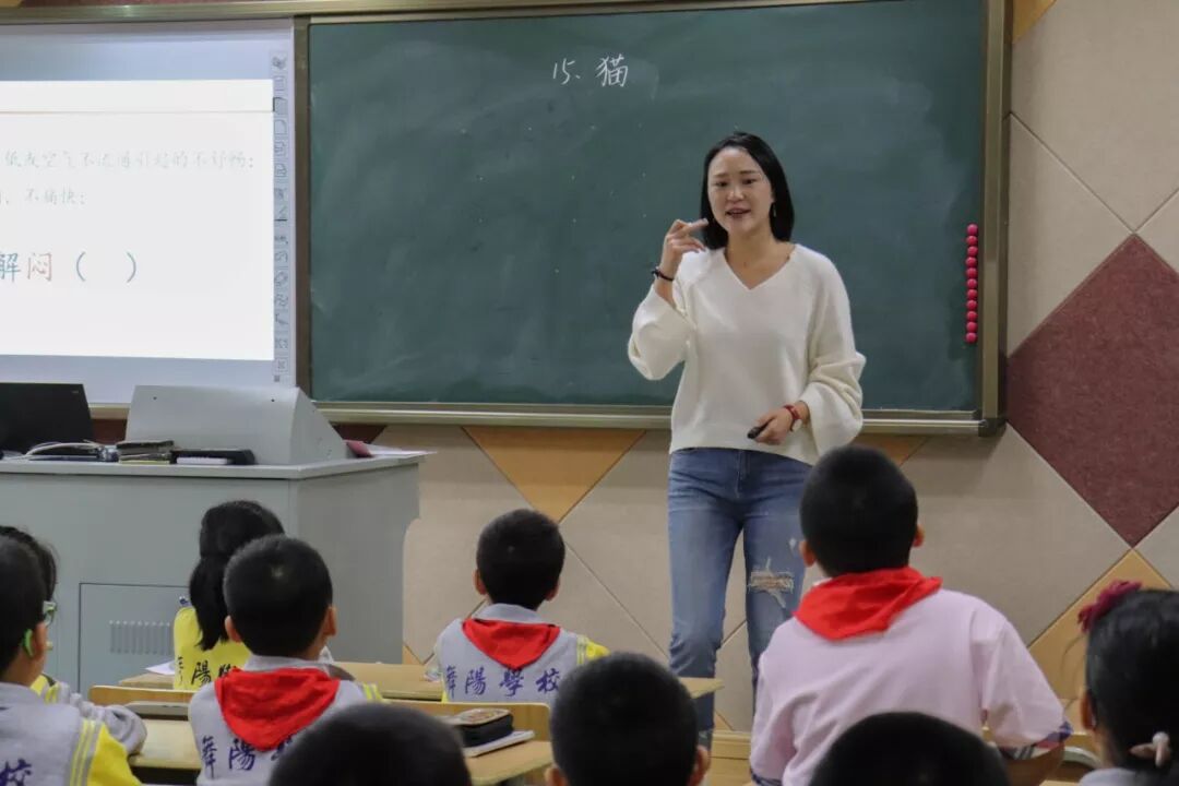 下午,语文组赛课的课题则是老舍的《猫》,青年教师木可琛以老舍对猫的情感为整节课的主线,层层引导,由表及里地带领孩子们感受这份情感。在“呼唤贪玩的猫”、“理解屏息凝视的含义”等部分极好地调动了课堂气氛。