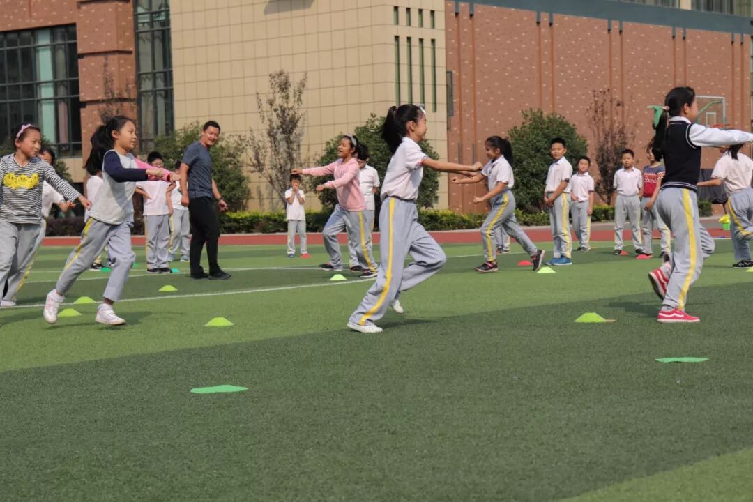 下午最后一位亮相的则是我校另一位党员教师高占文老师,他为我们带来的是体育与健康课时中的《弯道跑》。他设计了“圆圈跑”、“模仿交通工具弯道跑”、“你追我赶”等课堂环节,教学内容密度合理,练习具有梯度化。他的课堂设计不仅具有知识性,还具有很强的趣味性,使学生在练习中,学会合作,学会评价,体验运动的乐趣与成功的喜悦。