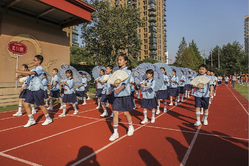 音乐响起,一个个方阵或童趣可爱,或激情澎湃。瞧!迎面走来的是低年级的代表队。