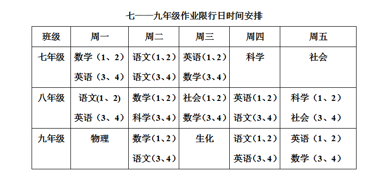 2013年第一学期,在附校教学工作计划中,“作业限行”被首次提出,并在该学期得到落实: