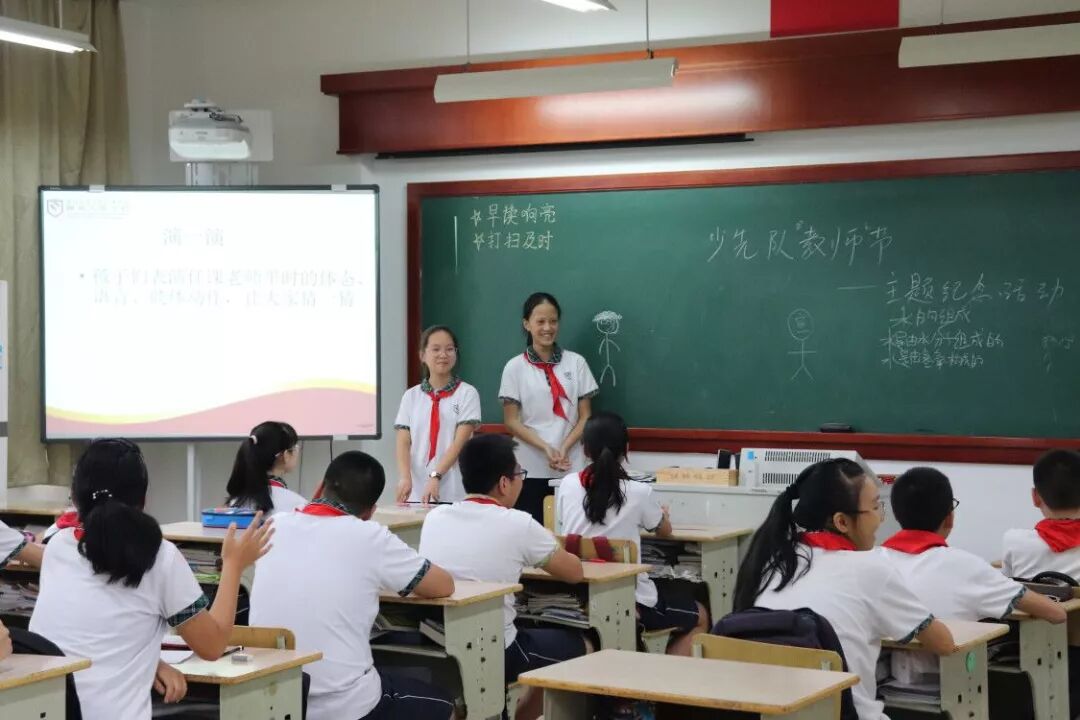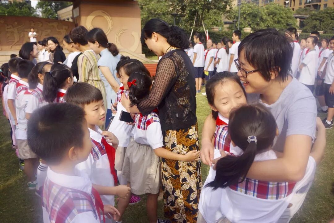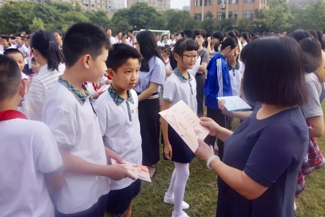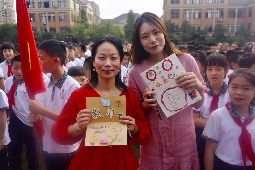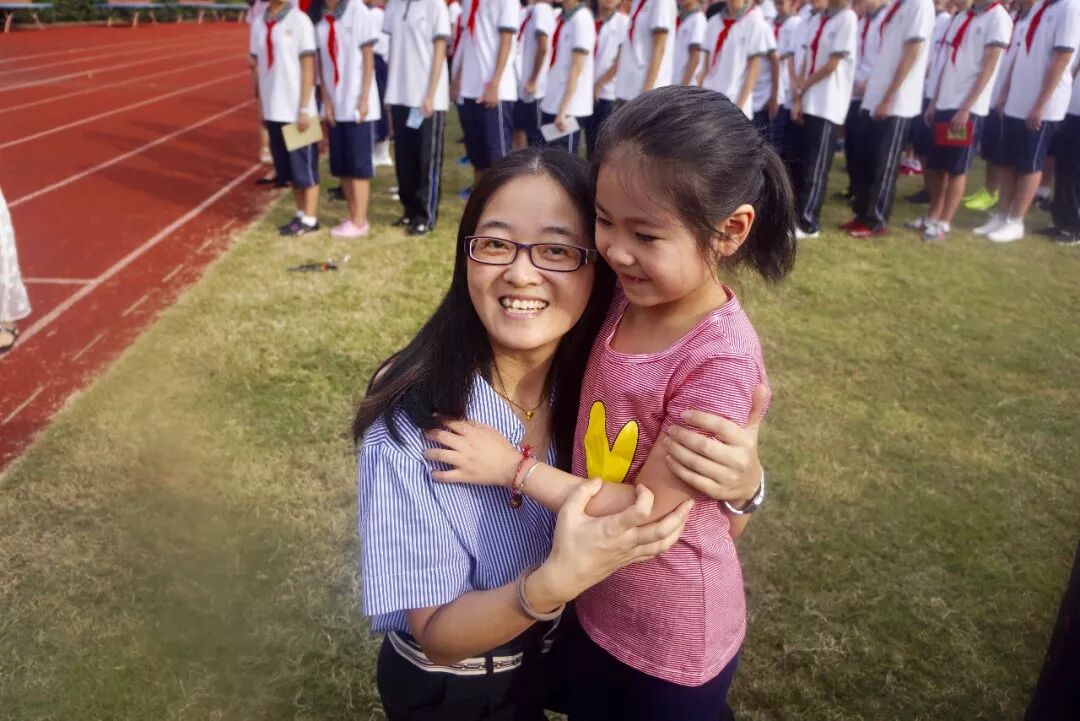 晨会时,一、二、三年级的学生代表给老师们送上大大的拥抱和衷心的祝福。