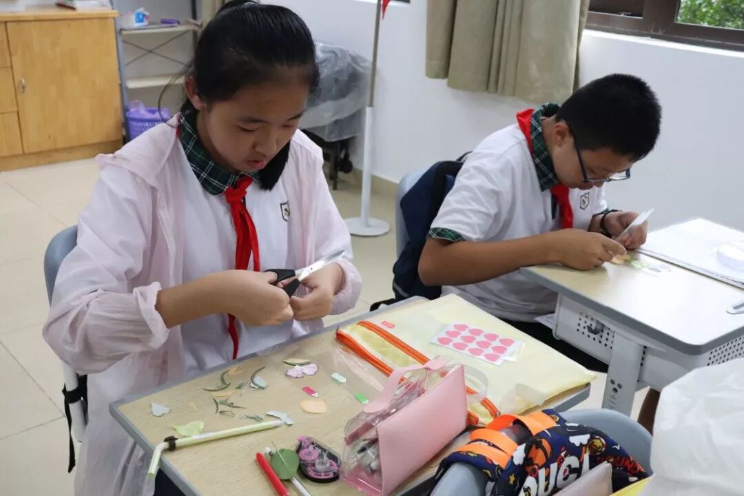 为了这份特殊的礼物,孩子们从上周就开始“忙活”啦。六、七年级同学们利用学校下发的花材、手机膜、丝带,加上一双巧手和多彩的创意,开始制作这份独一无二的礼物。