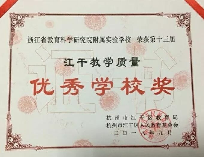 附校传喜讯,天地踏歌来。与教师节一起纷至沓来的是金秋的凉爽和丰收的喜悦,省教科院附校的老师们认真做教育、耐心育学子的工作也得到了社会的认可,如今收获累累硕果。在老师们的共同努力下,我校第六次取得江干教学质量优秀学校奖。