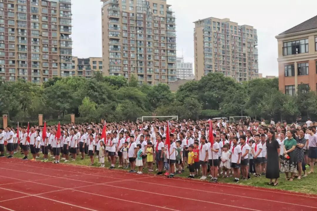 在欢快的音乐声中,六年级的大孩子们稳稳地牵着一年级新生们的小手,牵着附校的新生命,以简单愉快的走秀轻松入场,留下独特的开篇。新同学们在红毯上与学长学姐们一起,庄严地参与了第一次升旗仪式。