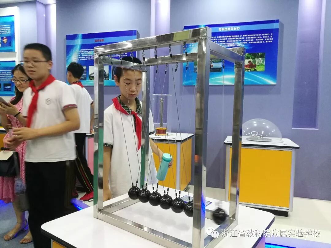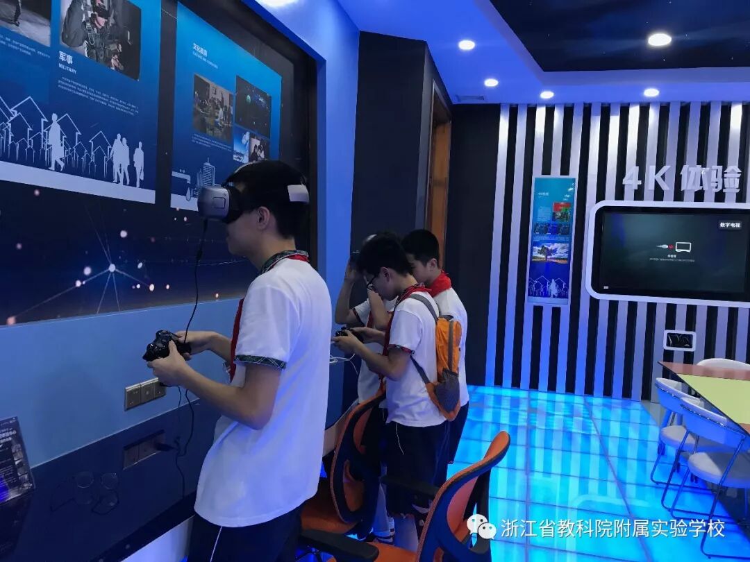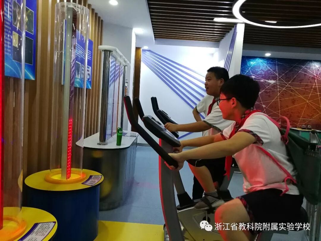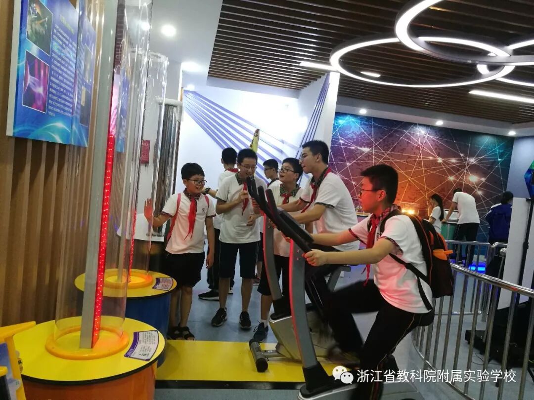 下午一点半左右,我们到达了学军中学紫金港校区,尽管一路的颠簸使我晕眩,但一进校门,便感到空气的新鲜及环境的秀美,有一种很特别的气息围绕在身边。校园里很安静,这里的一切都让我心向往之。让我感触最深的是去参观科技类教室,在这里我们可以看到很多设备,这些展品有互动性、趣味性,我们纷纷“玩”了起来,体验科技的魅力!