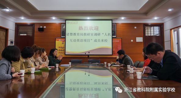 近日,诸暨市教育信息中心张镇潮等一行5人来我校考察交流“人机互动英语项目”,国家教育部“基于信息技术与英语教学整合”课题项目组负责老师和北京唯佳未来教育科技有限公司区域负责人共同参加了活动。