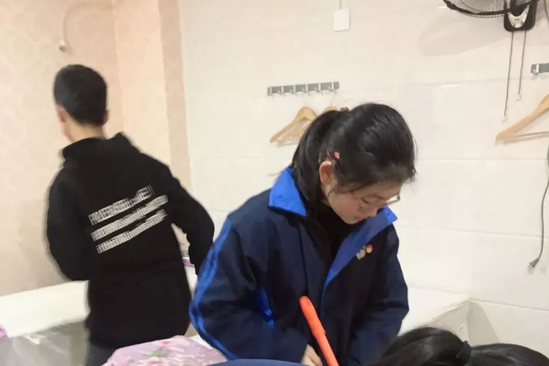 九一班的同学来到了盲人按摩中心,体验他们工作的不易,帮助打扫清洁。