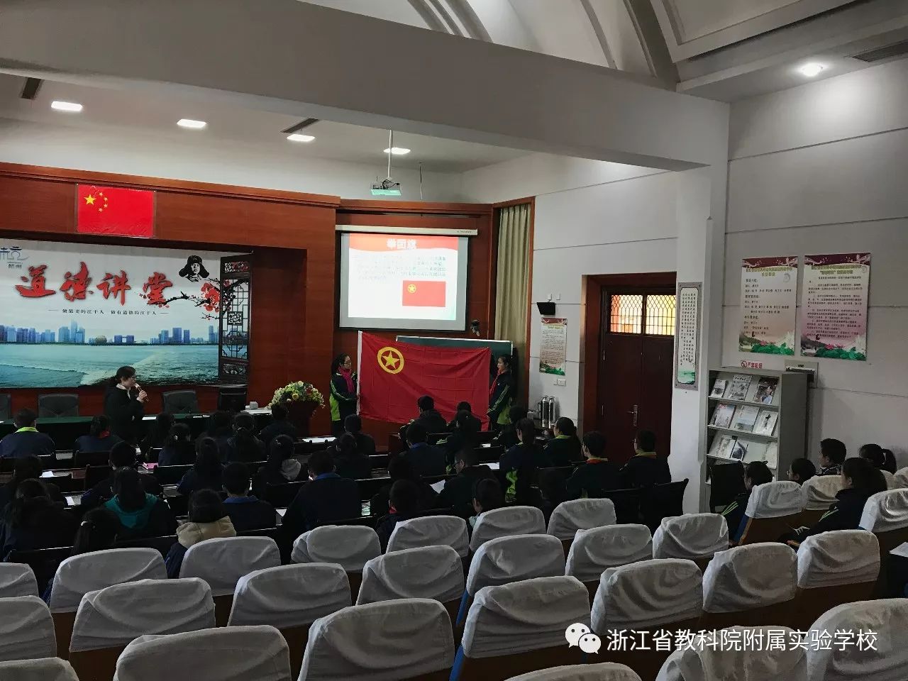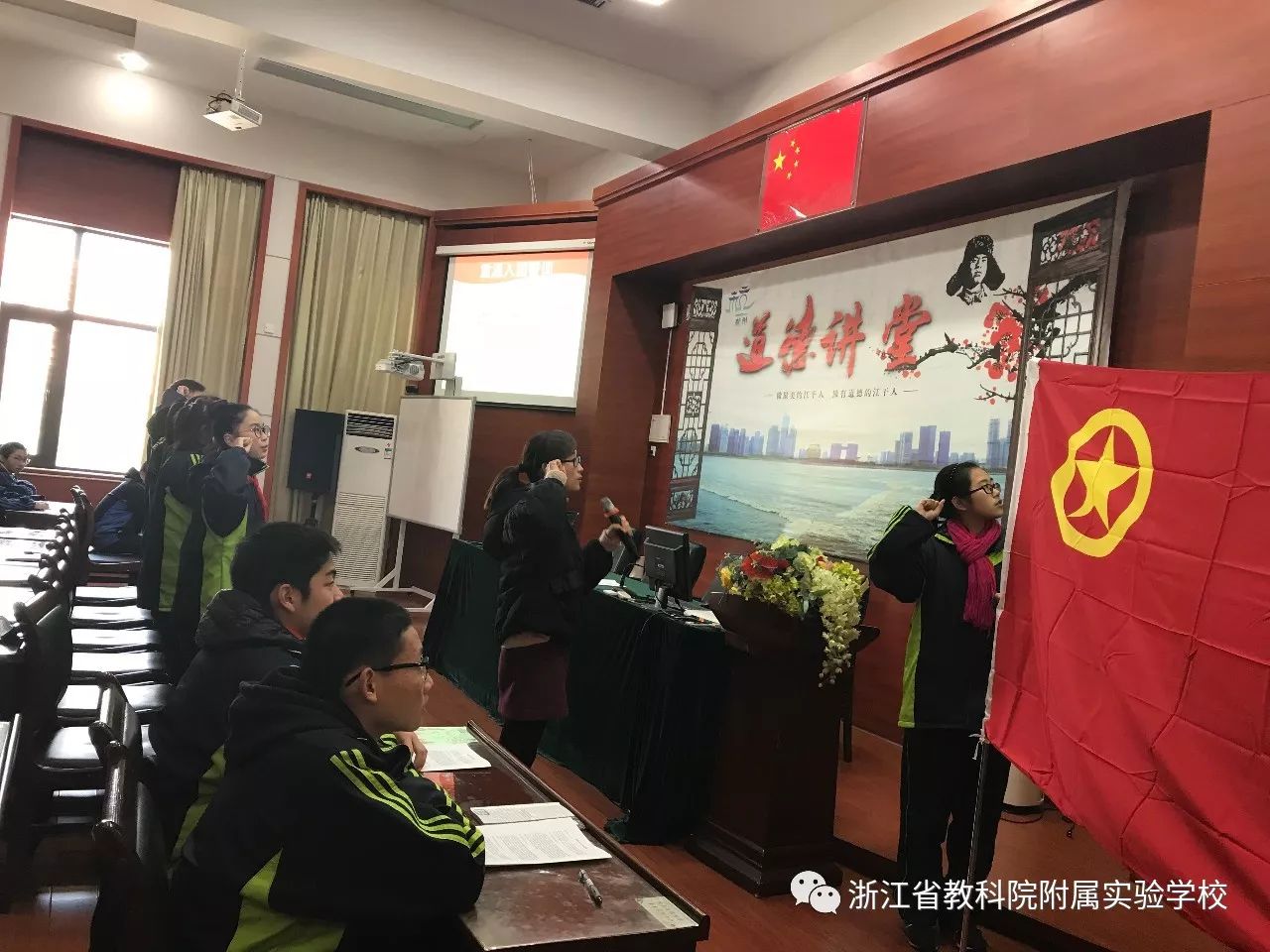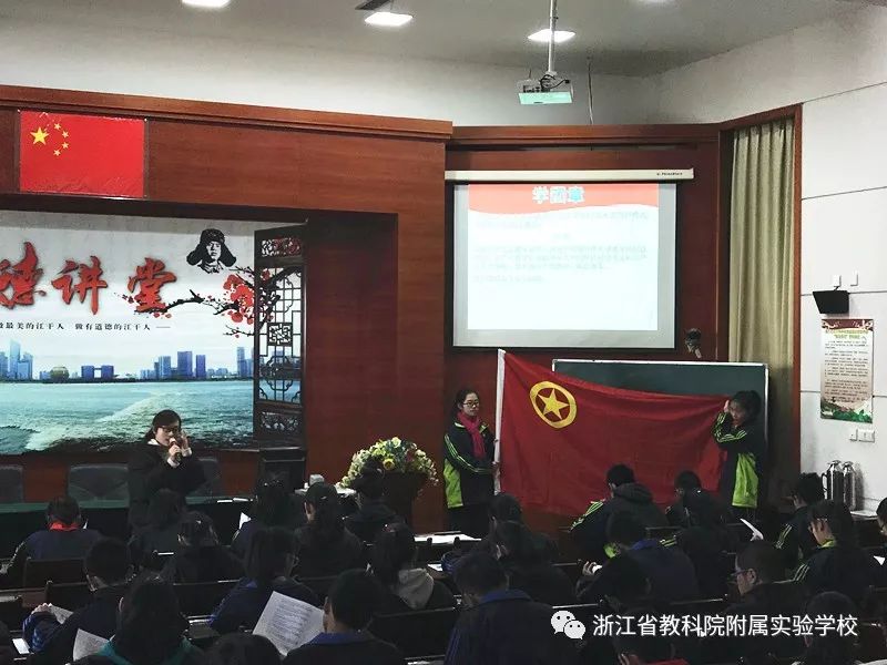 为加强团员的组织意识,省教科院附校的全体团员和入团积极分子在1220日中午在三楼阶梯教室组织开展了“举团旗、学团章、唱团歌、戴团徽”的团日活动。
