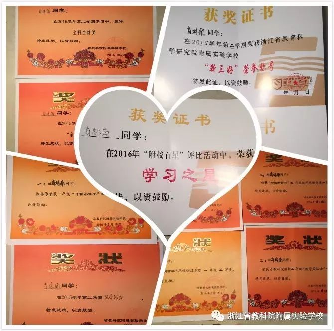 明明有个高颜值,可他偏偏要靠才华。作为班里的学习委员,肖林南学习成绩优异,入学才一年半,就得到了不少荣誉:在2015学年获得第一、二学期“新三好”、“全科优秀奖”称号,本学期校期中数学、语文学科竞赛中获得一、二等奖。在刚过去的“附校百星”活动中,更是获得了校“学习之星”的荣誉称号。肖林南特别喜欢数学,在2015学年获得了“数学优秀奖”、“计算小能手”,在这学期的“数学周活动”中获得一等奖。不仅在校内成绩优异,还在校外补充知识,分别取得了2016年“学而思杯赛能力测试二年级组”一等奖以及“学而思计算大赛二年级组”一等奖的好成绩。