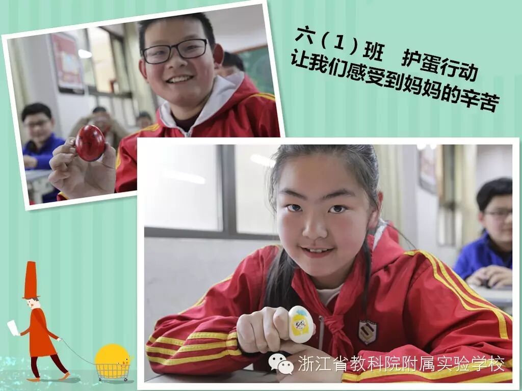 准备一只生鸡蛋,为他们精心打扮,把“蛋宝宝”当成自己的小生命,揣在怀里小心地看管,无论上课、吃饭、课间活动,“蛋小爸”“蛋小妈”们都要将“蛋宝宝”装在口袋里,小心地看护,这可是一个个“小生命”啊,千万不能磕着碰着。