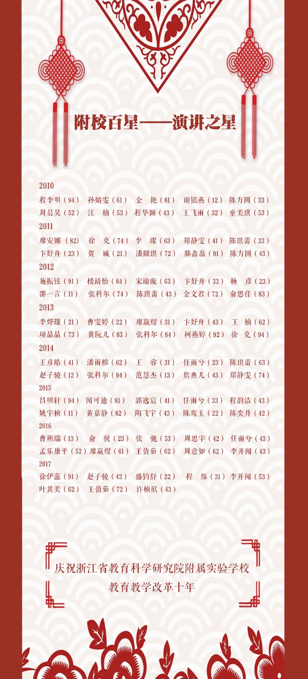 楼天依:“我们憧憬未来,也坚信省教科院附校明天会更好!最后祝附校的莘莘学子都能快乐学习,追逐梦想,为美丽校园续写下一个十年新篇章。”