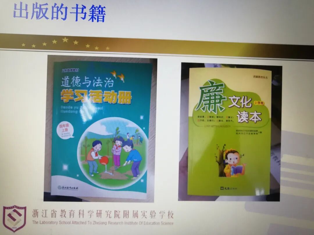 王瑛芝老师甘于寂寞,一杯淡茶,一卷清书,远离世俗的种种诱惑,闭门读书。读书拓宽了她的视野,启迪了她的智慧,充实了她的思想。她参与编写了一些书籍,如《品德与公民》《道德与法治的教师教学用书》《廉洁教育读本》《道德与法治学习活动册》《感恩教育读本》等,都已出版并投入使用。